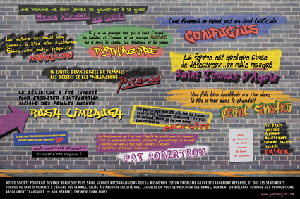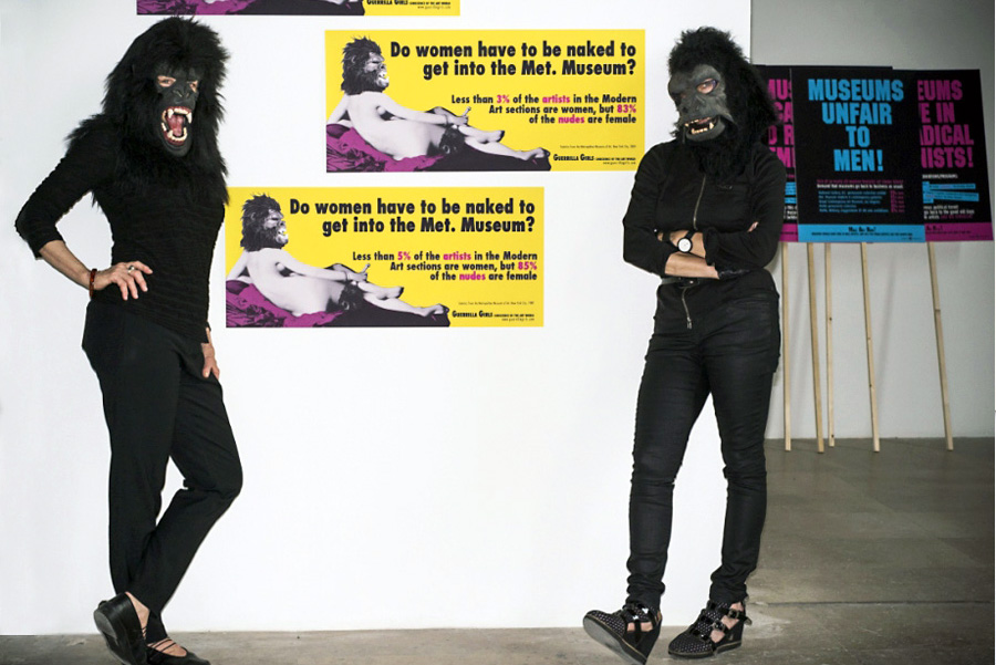 The Guerrilla Girls are feminist masked avengers in the tradition of anonymous do-gooders like Robin Hood, Wonder Woman and Batman. They use facts, humor and outrageous visuals to expose discrimination and corruption in politics, art, film, and pop culture. They undermine the idea of a mainstream narrative by revealing the understory, the subtext, the overlooked, and the downright unfair. They've unveiled anti-film industry billboards in Hollywood just in time for the Oscars, dissed the Museum of Modern Art, New York, at its own Feminist Futures Symposium, and created large scale projects for the Venice Biennale; the Centre Pompidou, Paris; Istanbul; Mexico City; Athens; Rotterdam; Bilbao; Sarajevo; Shanghai; Ireland; Krakow and Montreal. They are authors of stickers, billboards, posters, street projects, and several books including The Guerrilla Girls' Bedside Companion to the History of Western Art; Bitches, Bimbos and Ballbreakers: The Guerrilla Girls' Guide to Female Stereotypes; The Guerrilla Girls' Art Museum Activity Book; and The Guerrilla Girls' Hysterical Herstory of Hysteria and How it Was Cured, from Ancient times Until Now. Their work is passed around by their tireless supporters. They travel the world doing performances and workshops, encouraging thousands of people to invent their own crazy kind of activism, too. Just in the few years, they