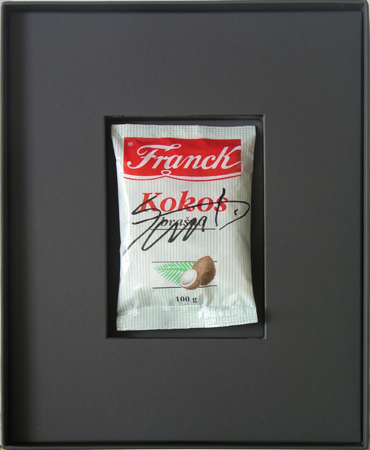 Franck box 2009 Boîte, sachet de produit d’épicerie, ouate Série de 10 boîtes uniques numérotées et signées 29 x 36 x 6 cm Edité par la Galerie